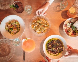 Rick beschrijft het concept als speels en geïnspireerd op de Middellandse Zee. “Denk aan Spanje, Midden- Oosten en een vleugje Italiaans.” Chefkok Jody van den Berg werkte eerder in een luxe fine dining-restaurant en kookt vooral vers en ambachtelijk. Alles wat mogelijk is, maken ze zelf. Zo roken ze de pastrami in eigen keuken en draaien ze hun eigen ijs. “Voor de producten die we zelf niet maken zoeken we partijen die kwaliteit leveren en het liefst uit de buurt.” Brood komt van de Knollentuin, vlees van boerderij De Lindenhof en wijnen van wijnhandel Arends. Het shared dining-concept versterkt de beleving. Je proeft samen van verschillende gerechten. “Met groepen boven de acht hoef je alleen maar na te denken of je een drie- of viergangen diner wil. En met het shared dining concept proef je van alle verschillende gerechten en ontdek je steeds nieuwe smaken.”Reserveer nu een plek in een bruisende omgeving
